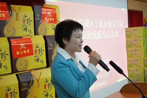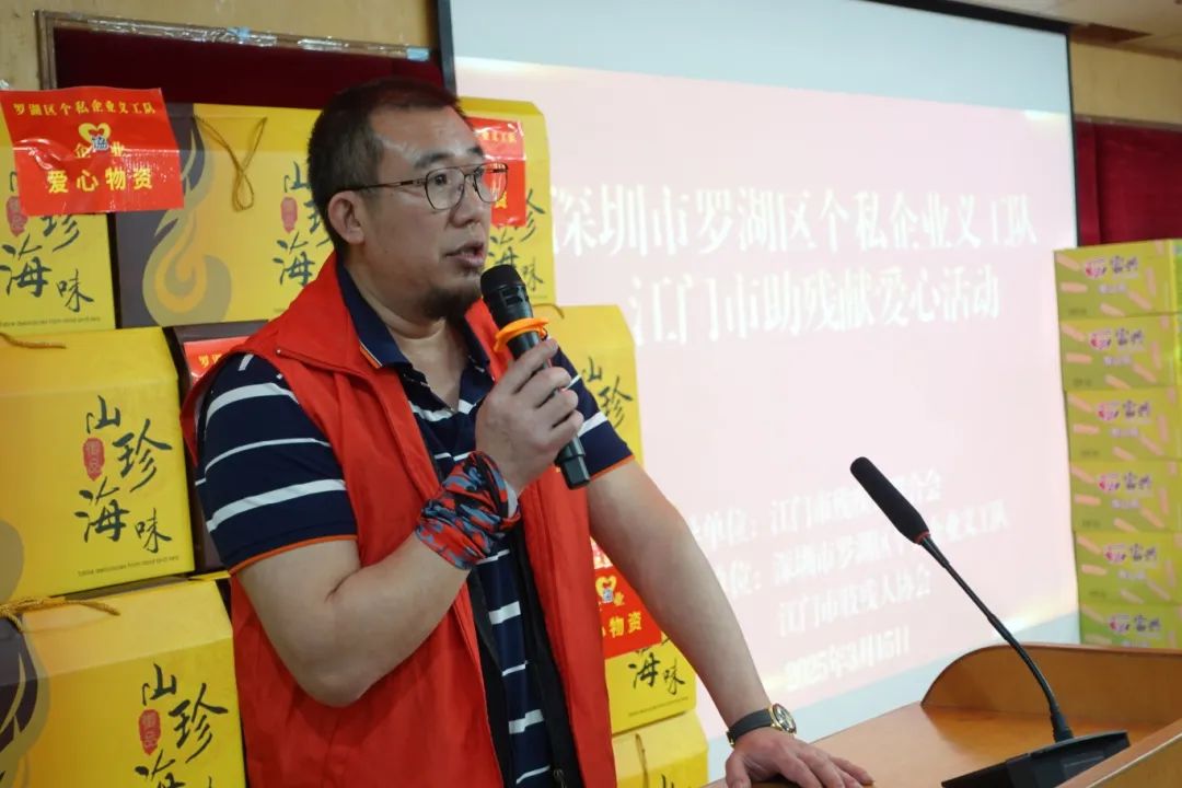 江门市残联党组书记、理事长叶芳华向远道而来的深圳市罗湖区个私企业义工队表示感谢。她表示,站在粤港澳大湾区融合发展的重要节点,在江门市委市政府的关心重视和社会各界的大力支持下,残疾人事业正焕发勃勃生机。罗湖区个私企业义工队的善举不仅是一次物资援助,更是精神力量的传递。同时鼓励残疾人朋友要继续发扬自尊、自信、自立、自强精神,从受助者变成助人者,为奋力谱写中国式现代化江门篇章贡献一份力量。