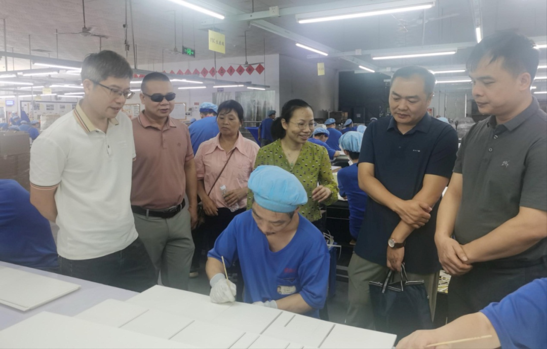 7月8日至10日,崇左市残联兼职副理事长谢东来带队到江门考察交流残疾人工作。江门市残联党组成员、副理事长黄锦尧陪同考察组一起到蓬江区康体盲人按摩中心、鹤山雅图仕印刷有限公司“爱心工场”等参观交流。
