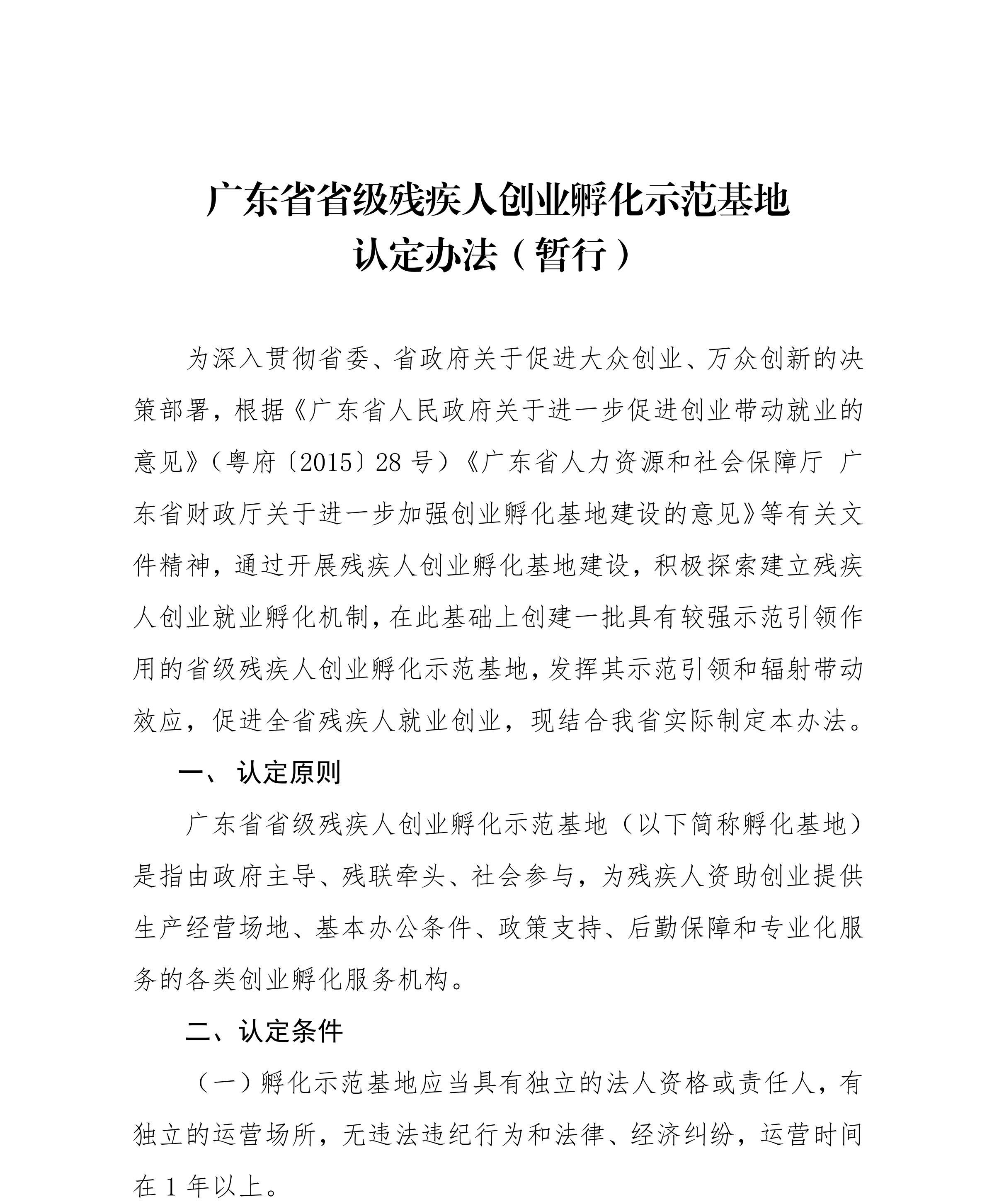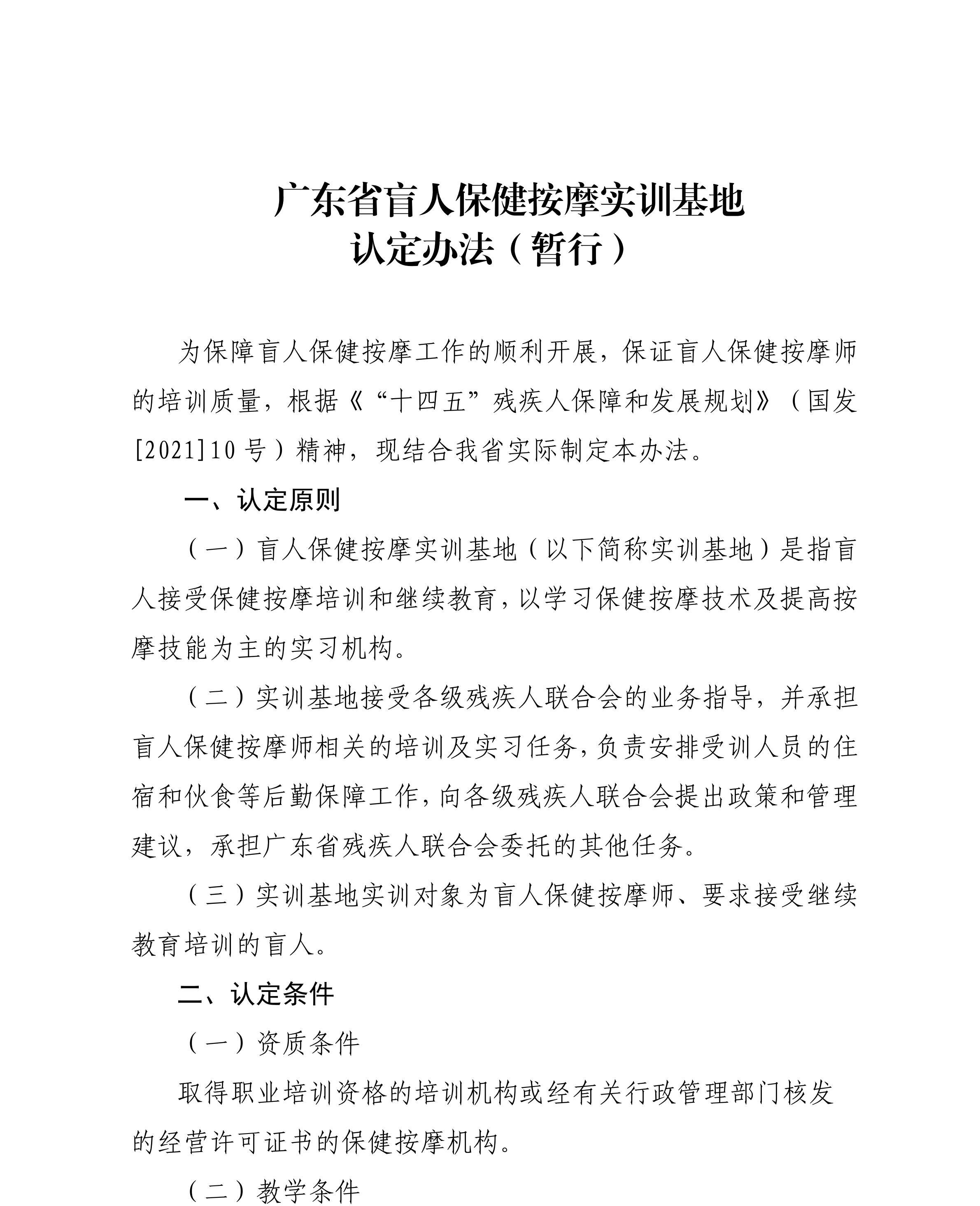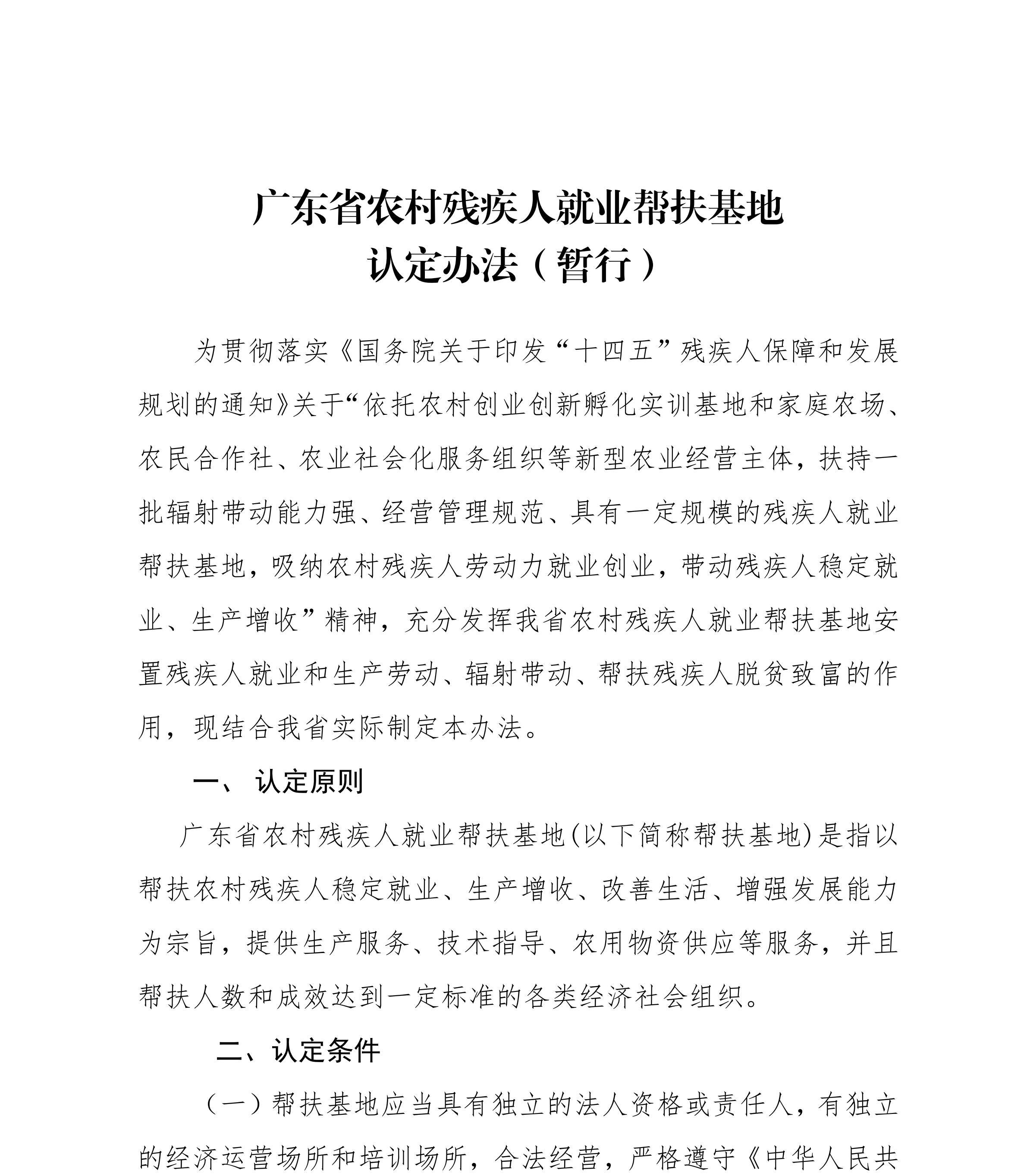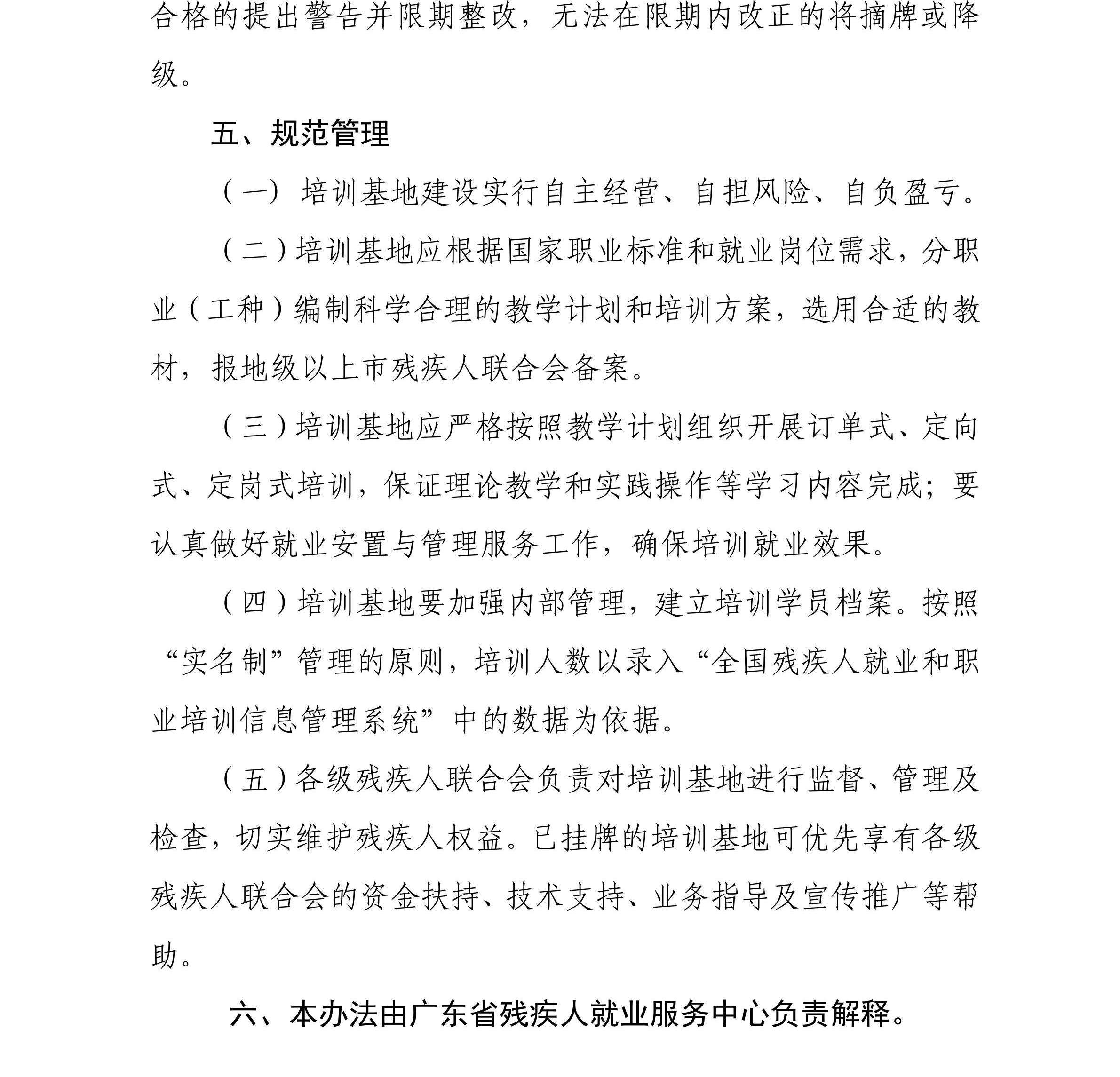 广东省残联关于印发残疾人集中就业、就业帮扶、职业培训、创业孵化、盲按实训等基地认定办法(暂行)的通知(粤残联〔2021〕115号)