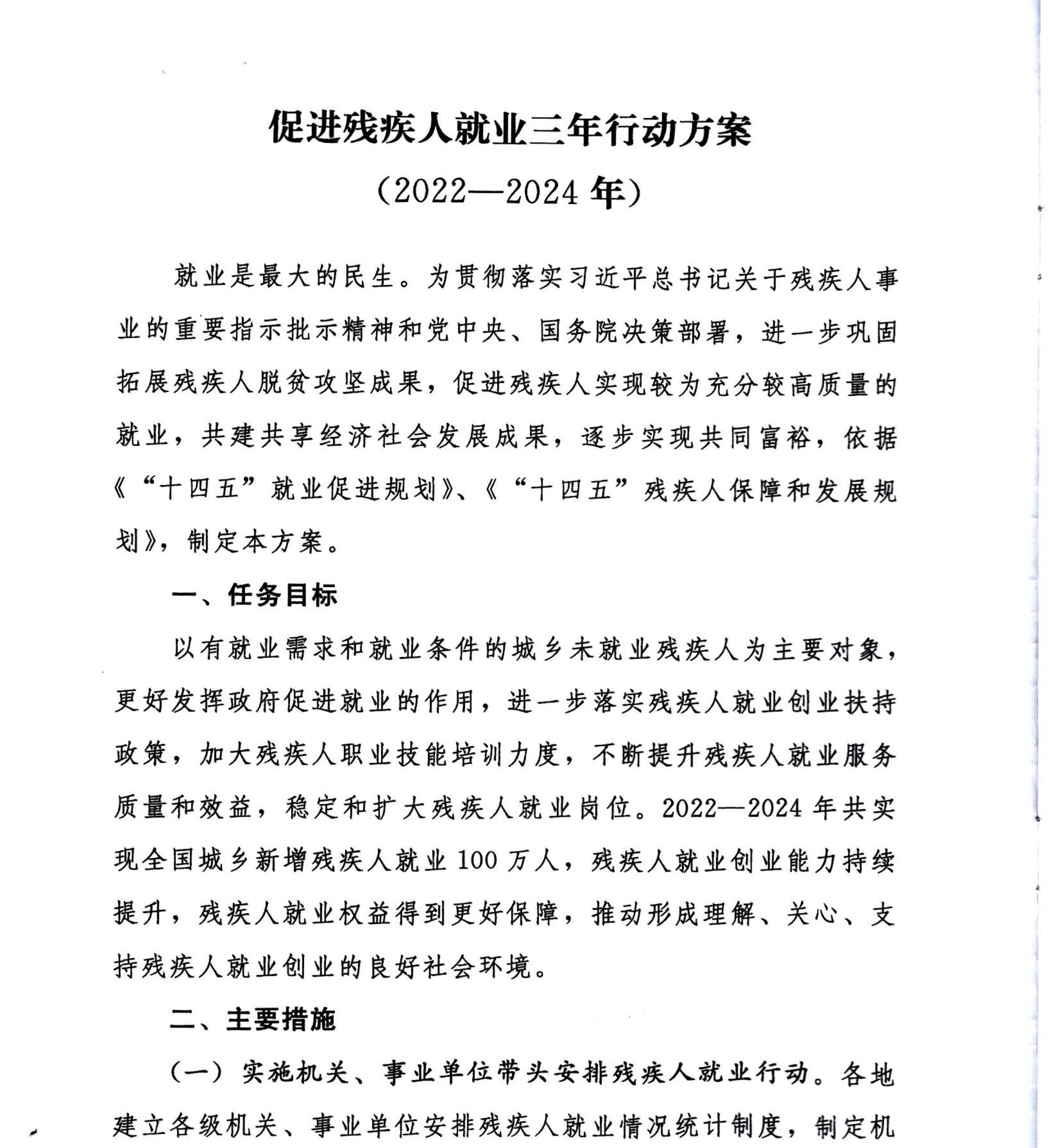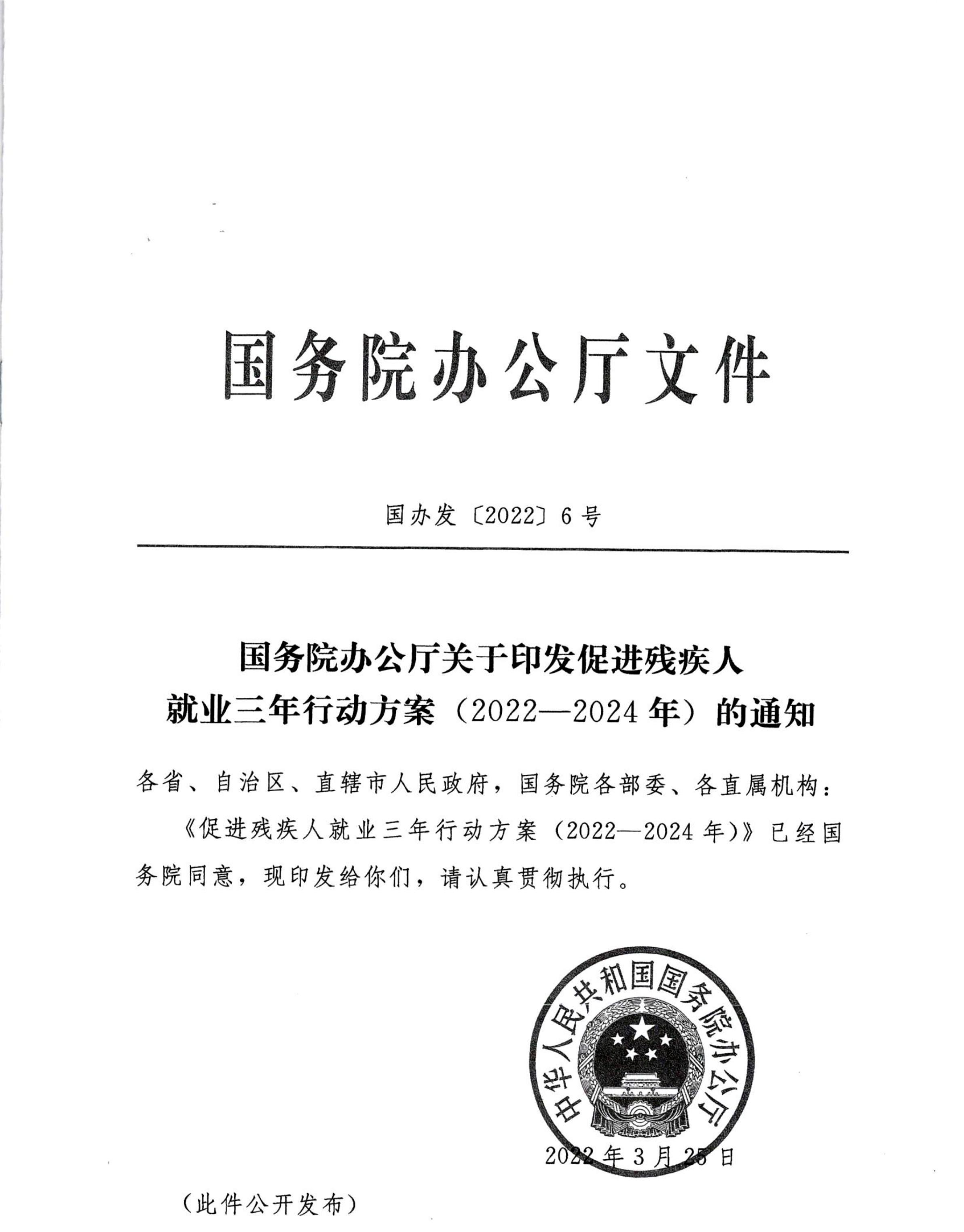国务院办公厅关于印发促进残疾人就业三年行动方案(2022—2024年)的通知(国办发〔2022〕6号)
