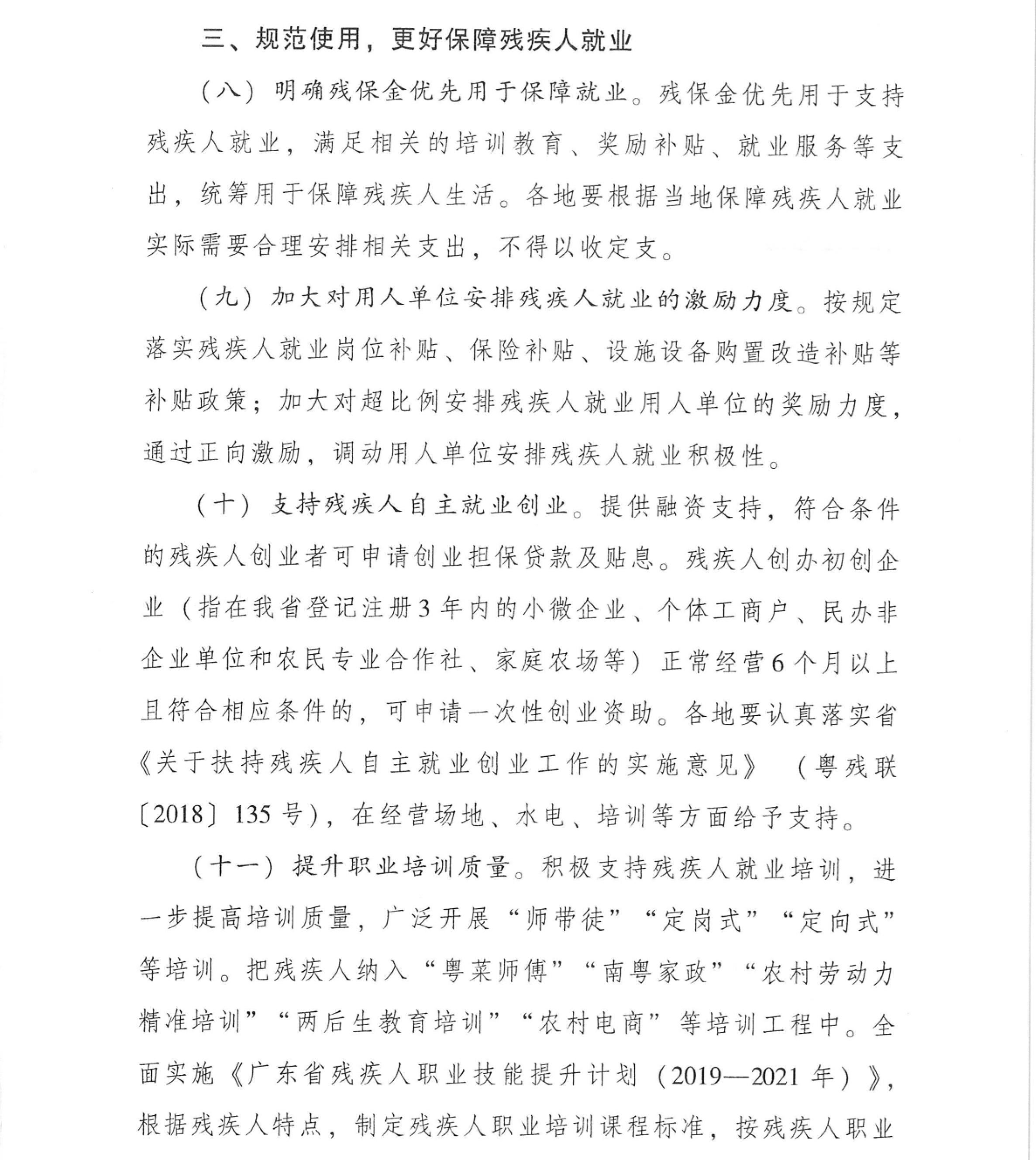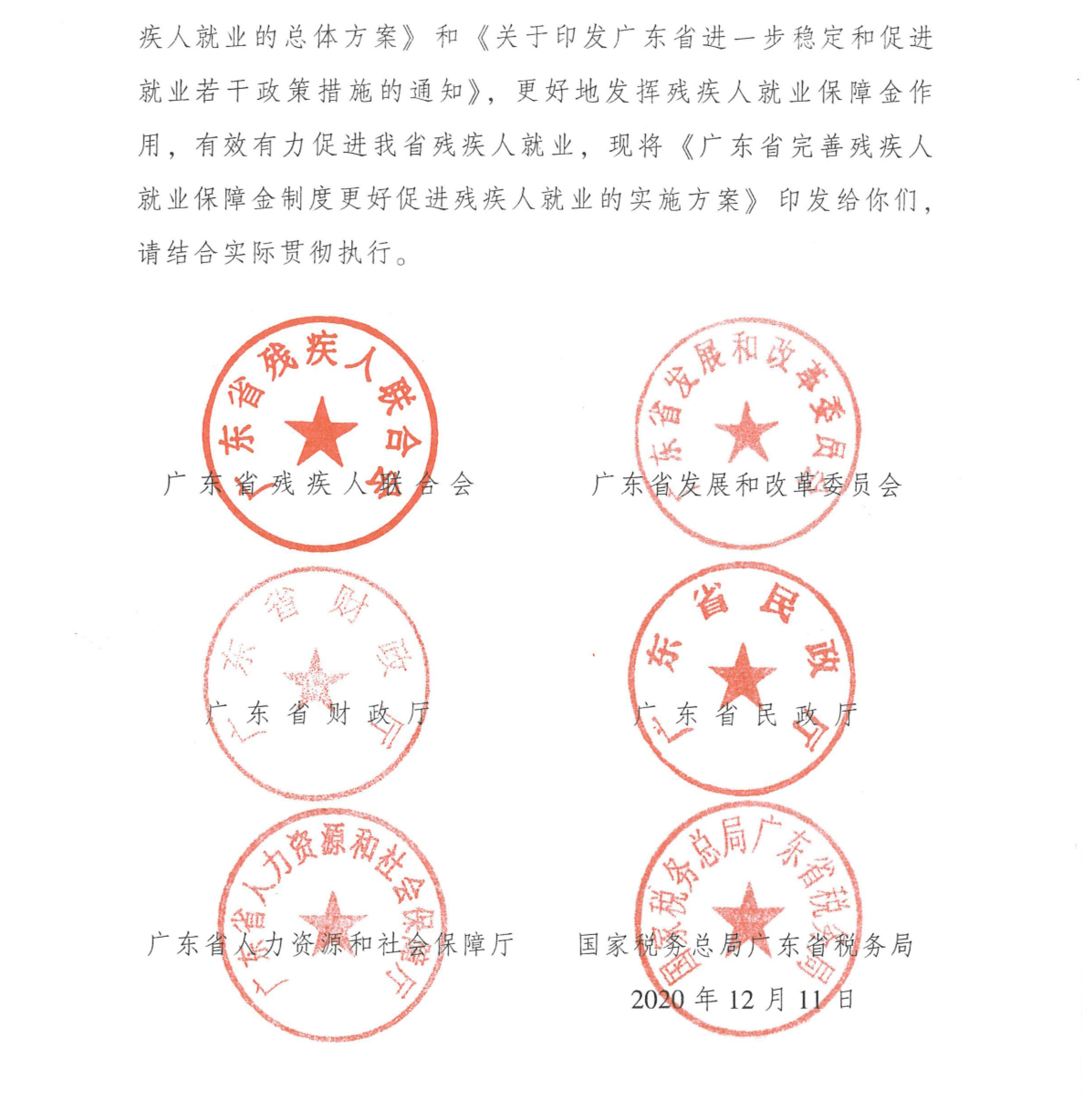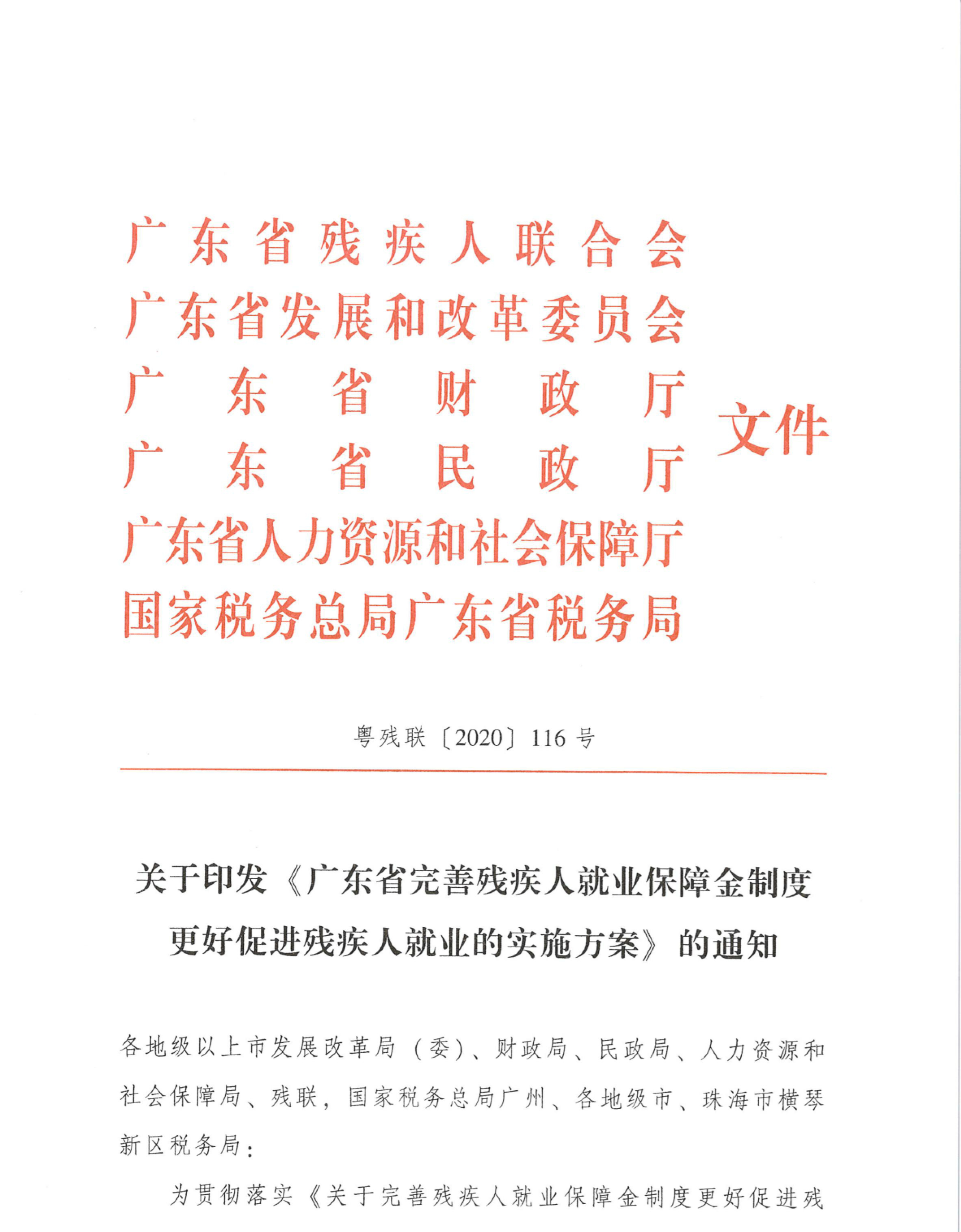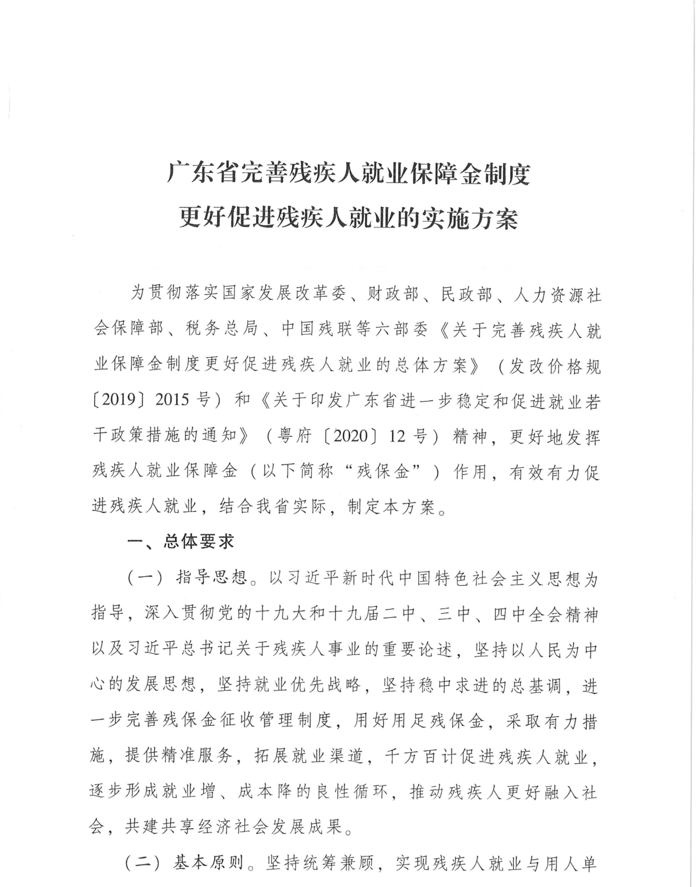 关于印发《广东省完善残疾人就业保障金制度更好促进残疾人就业的实施方案》的通知
